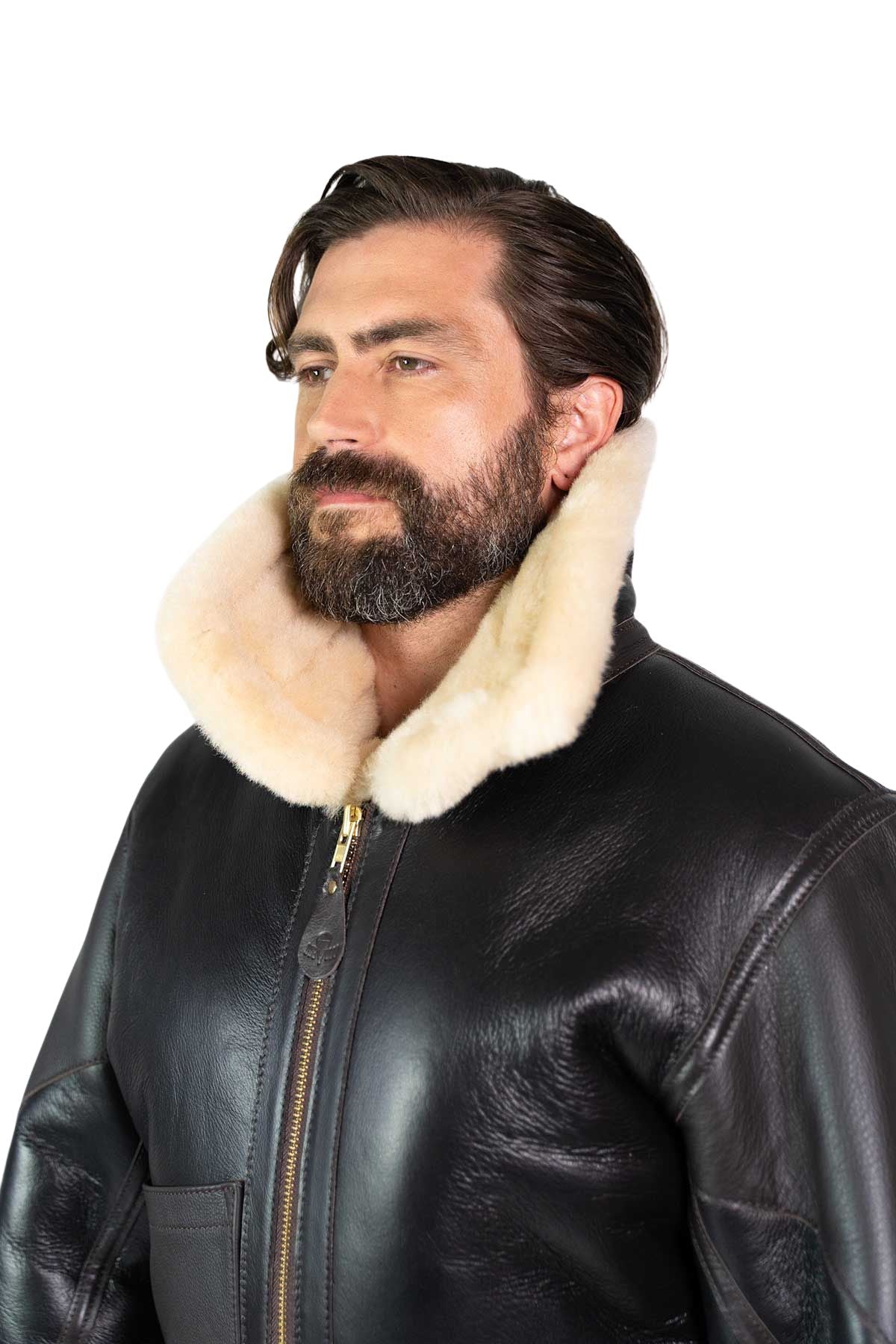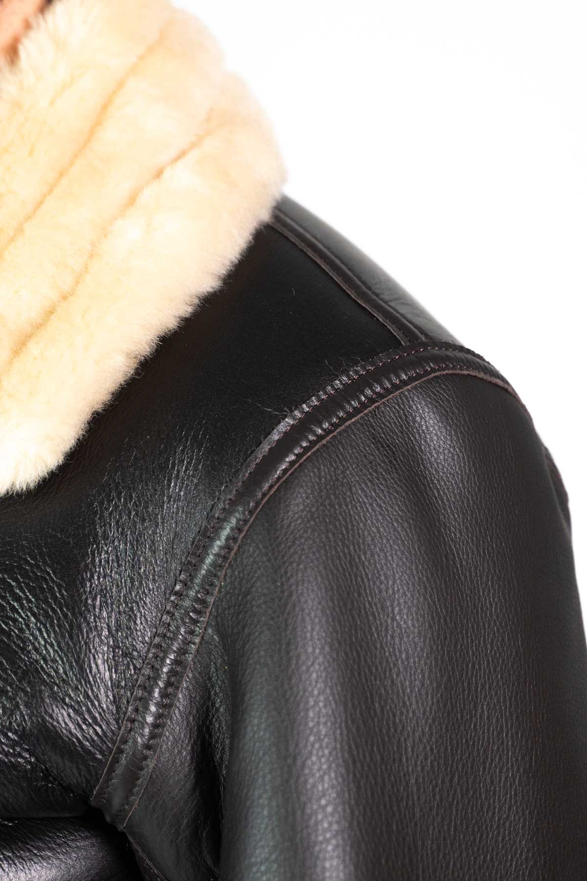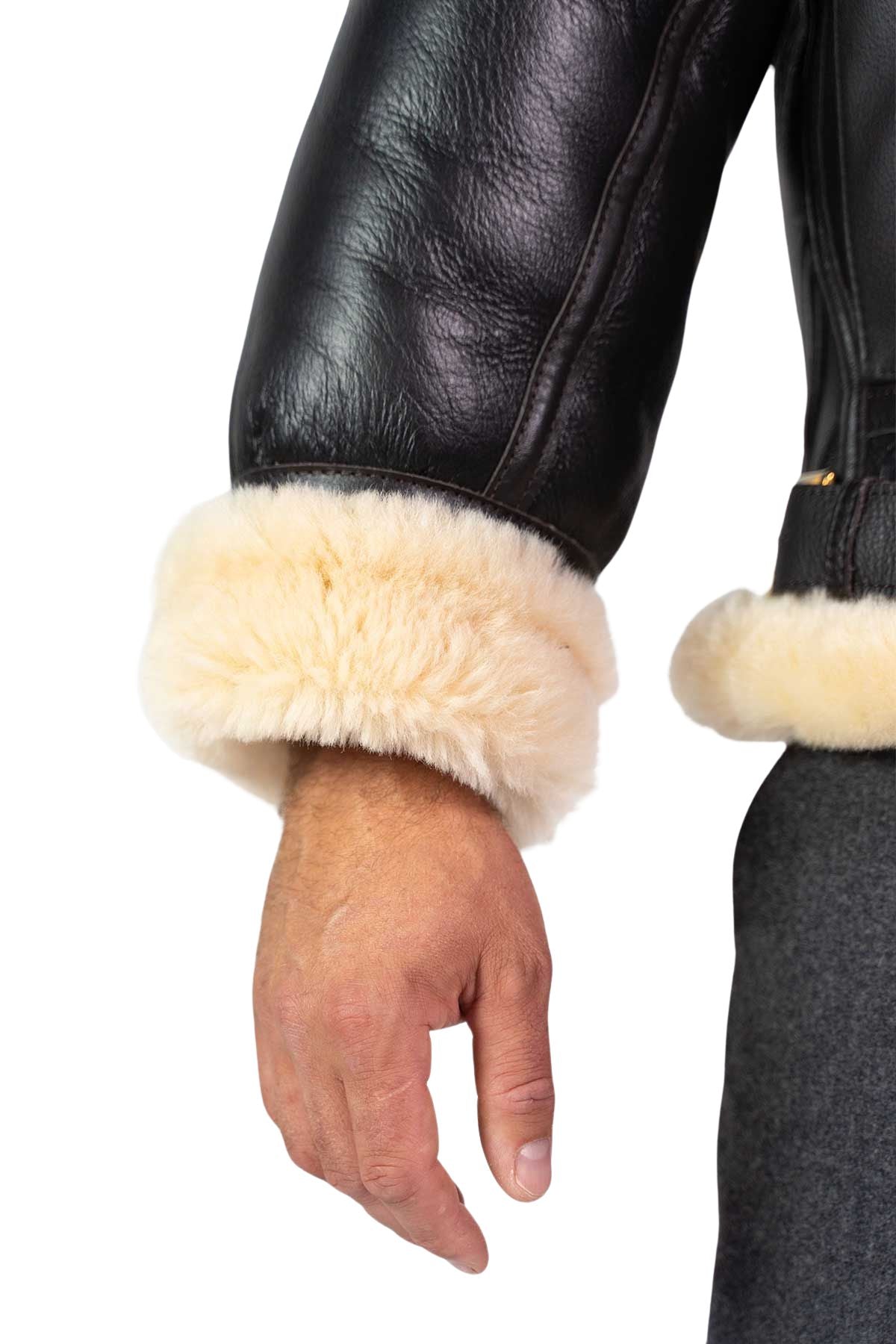 All sheepskin garments with a 'leather look' have a sprayed on finish. This is true of every brand available on the market, and the finish will wear to a suede-like appearance over time. This finish is colourfast under normal circumstances.