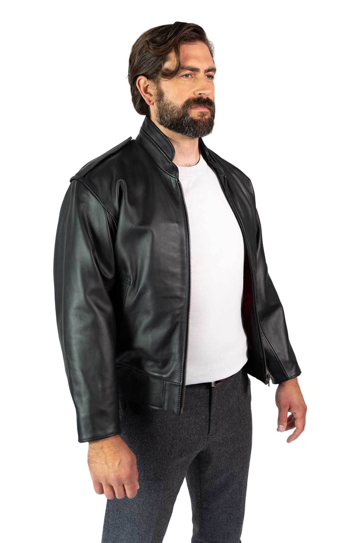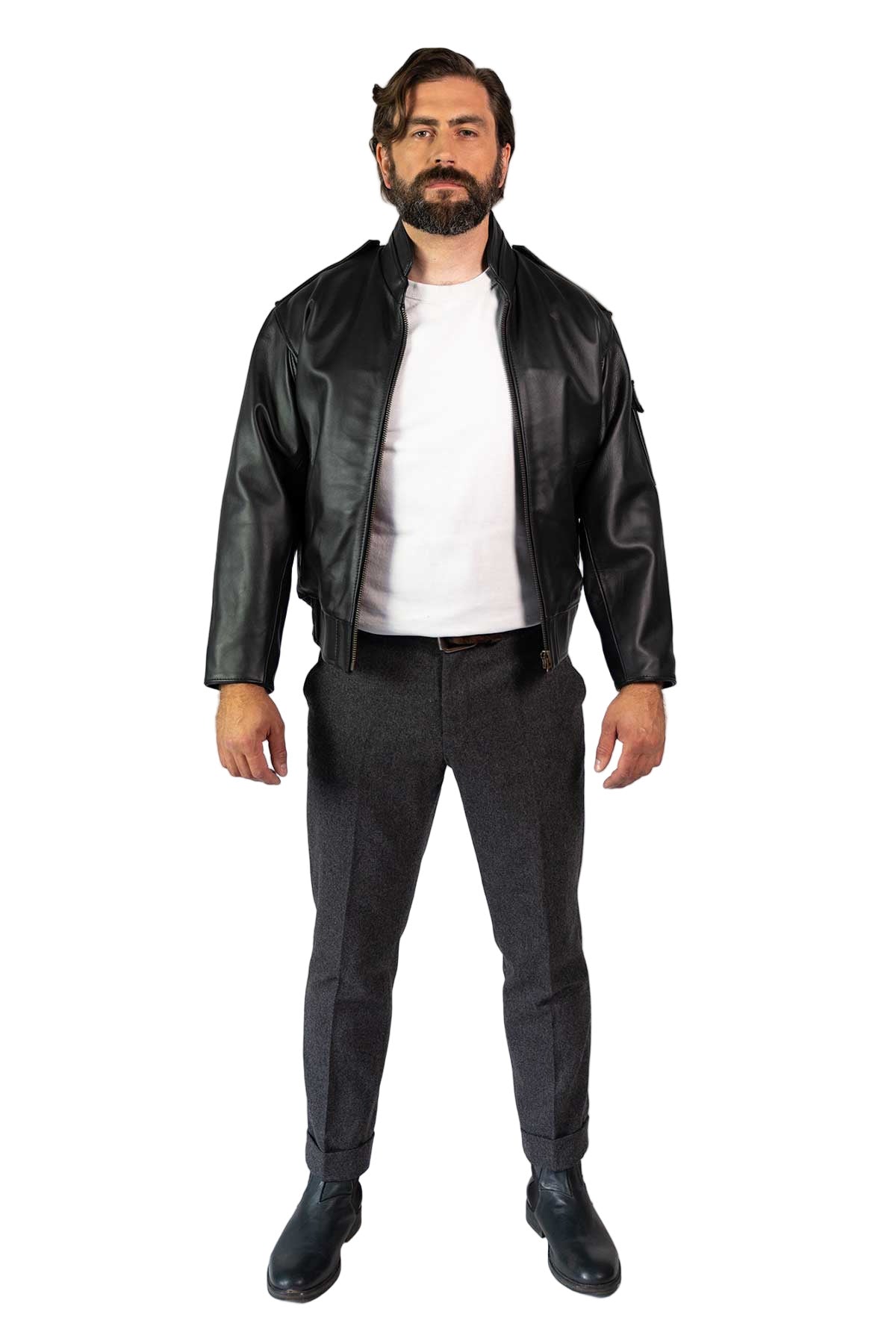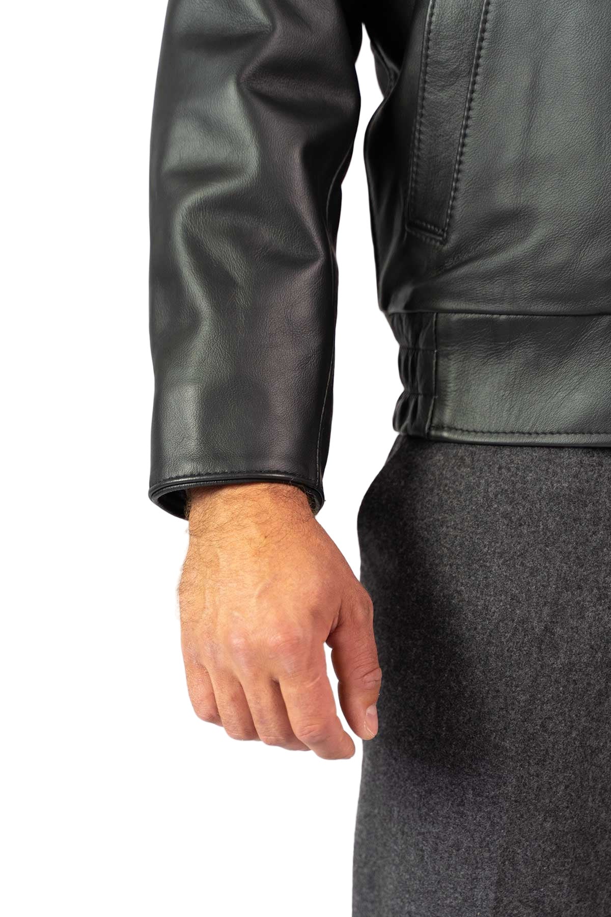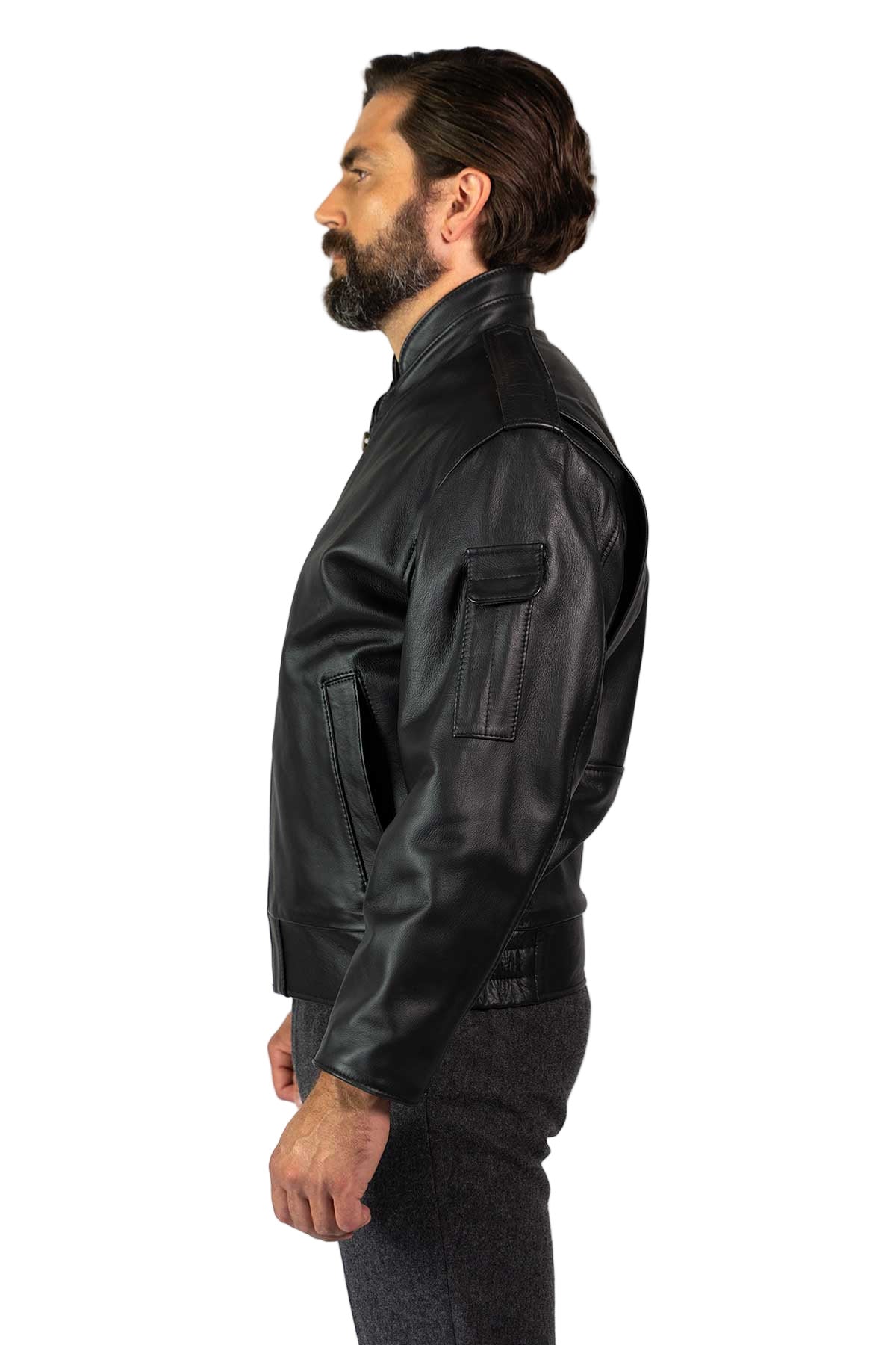 Leather cuffs and waistband with side epaulettes