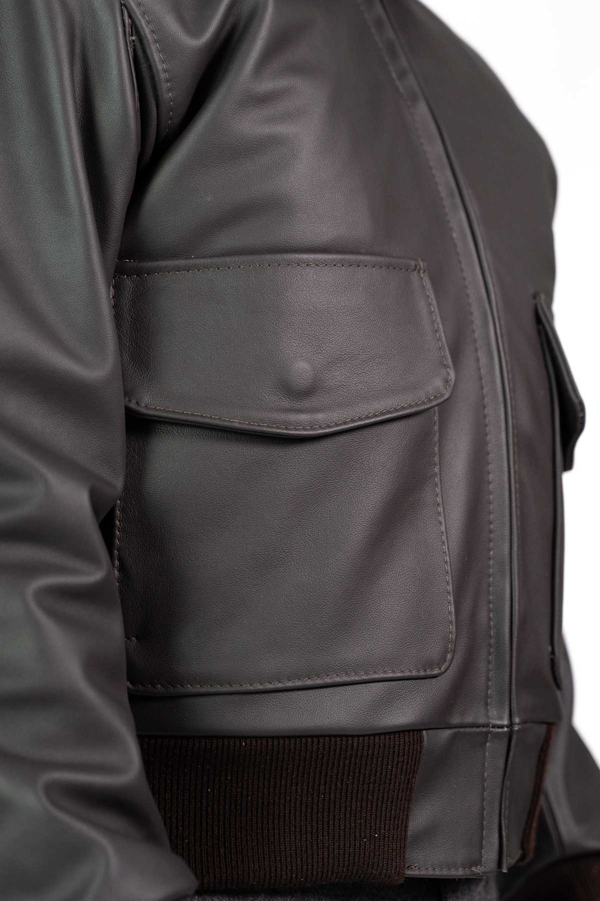 Crafted from dark brown steer hide, this version comes with a detachable sheepskin collar and a zip-in cold weather lining for maximum versatility. From cockpit to city street, it’s made to go the distance.